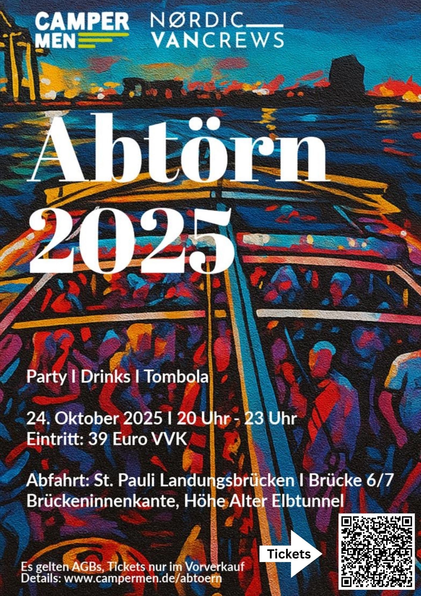 Die Campermen feiern – nachträglich – ihr Jubiläum. Im Sommer haben sie ihre 200. Folge veröffentlicht. Das nehmen wir zum Anlass, mit Gästen eine kleine Partytour auf der Elbe zu unternehmen. Die Barkassentour findet am 24. Oktober ab 20.00 Uhr statt und dauert ca. drei Stunden, die Tickets sind limitiert. Bei der Tour dürfen die Nørdic-Vancrews als Partner mitfeiern. Mitfahren und mitfeiern lohnt sich: Unter allen Gästen verlosen wir in einer Tombola unter anderem eine Powerstation der Firma Bluetti im Wert von über 1.000 Euro.